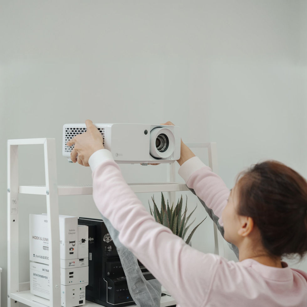Optoma Wave series, compact-sized projector that brings outstanding picture quality on a large projection screen wherever you are. Say goodbye to bulky and space-consuming equipment because this projector is designed to easily fit into any room without taking up precious space. Whether you're living in a small apartment or constantly on the move as a renter, this portable projector is your perfect companion. Unlike traditional TVs that are heavy and cumbersome to transport, our projector is lightweight and can be effortlessly carried wherever you go. No more worrying about the risks of damage or breakage during relocation. Embrace the freedom of hassle-free entertainment with our portable projector, making your movie nights and visual experiences more accessible than ever before.